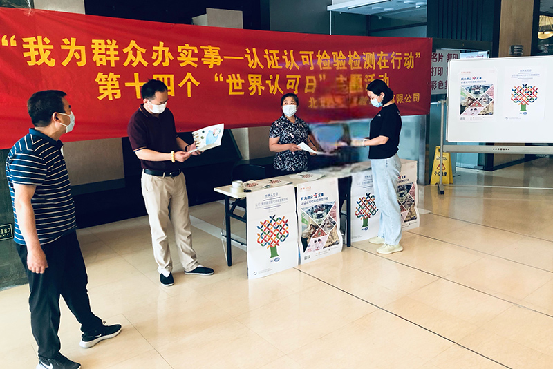 6月9日,是第十四個“世界認(rèn)可日”,是世界各國宣傳和推動認(rèn)證認(rèn)可工作的共同節(jié)日。為了深入貫徹落實國家市場監(jiān)督管理總局(國家認(rèn)證認(rèn)可監(jiān)督管理委員會)以及朝陽區(qū)市場監(jiān)督管理局決策部署,推動認(rèn)證認(rèn)可檢驗檢測服務(wù)民生、服務(wù)發(fā)展,北京坤標(biāo)檢驗認(rèn)證有限公司作為認(rèn)證認(rèn)可行業(yè)的一支生力軍,我們以“我為群眾辦實事——認(rèn)證認(rèn)可檢驗檢測在行動”主題宣傳活動為契機,組織公司員工開展了形式多樣的宣傳活動: